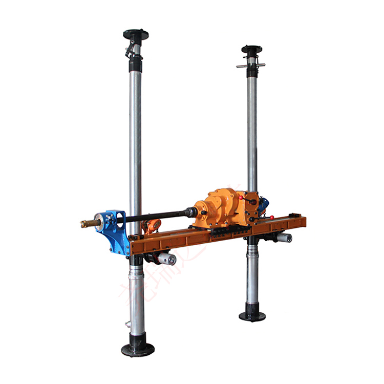 ZQJC系列氣動架柱式鉆機是為瓦斯?jié)舛雀咔揖虏灰资褂玫碾娫吹南锏涝O(shè)計,該機結(jié)構(gòu)為手動液壓頂緊,氣動馬達嚙合齒條驅(qū)動回轉(zhuǎn)器進給和后退,主機回轉(zhuǎn)器可實現(xiàn)正反雙向旋轉(zhuǎn) ,從而實現(xiàn)塌孔狀態(tài)時,鉆桿順利退出。該鉆機具有安全防爆、轉(zhuǎn)矩大、轉(zhuǎn)速高、體積小、重輕、結(jié)構(gòu)簡單、拆裝方便、維修簡單等特點,從而大大降低了工人的勞動強度。該系列鉆機可以配套使用高品質(zhì)螺旋鉆桿和地質(zhì)鉆桿。